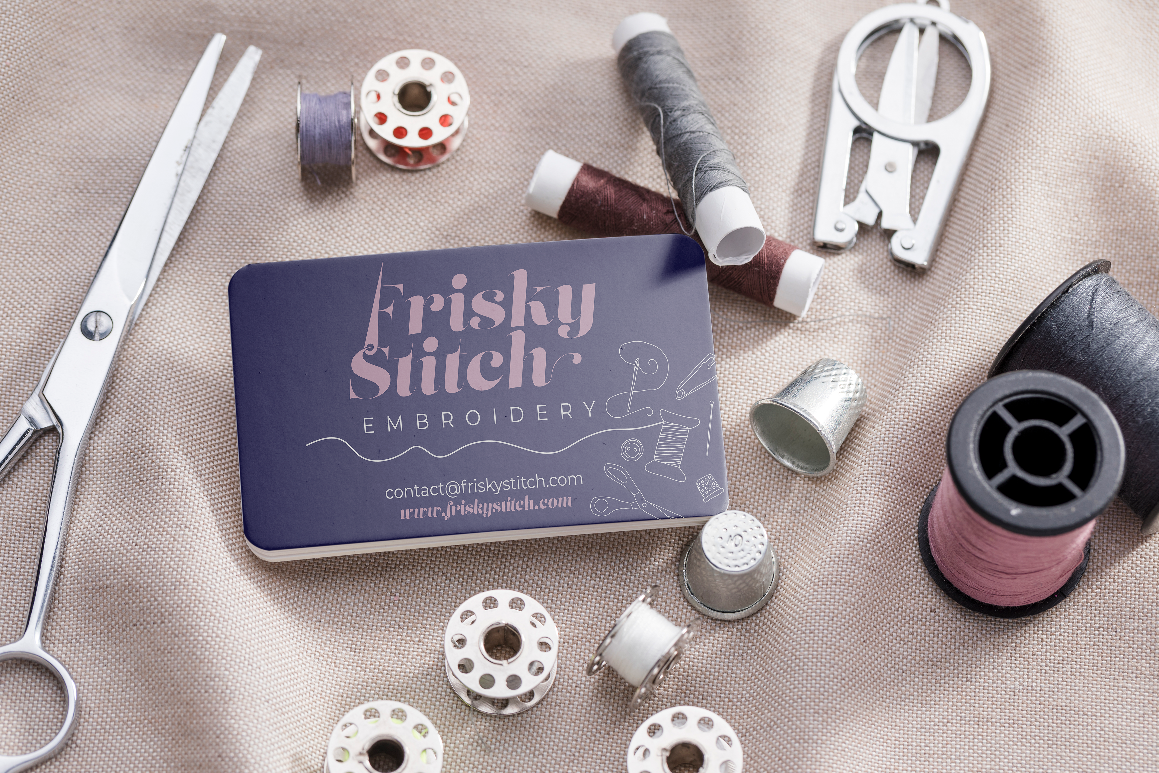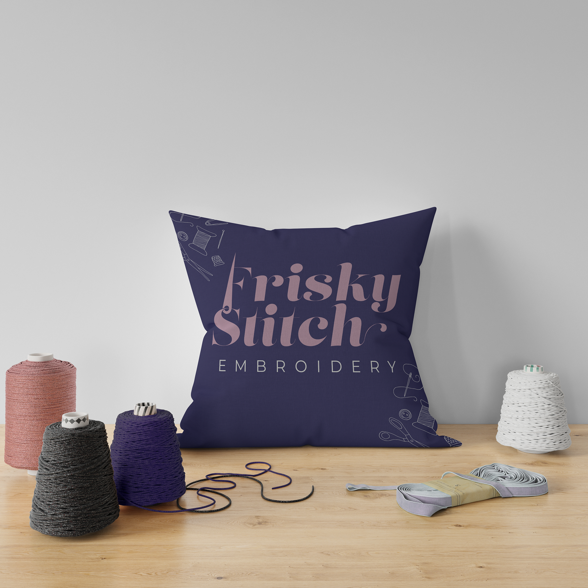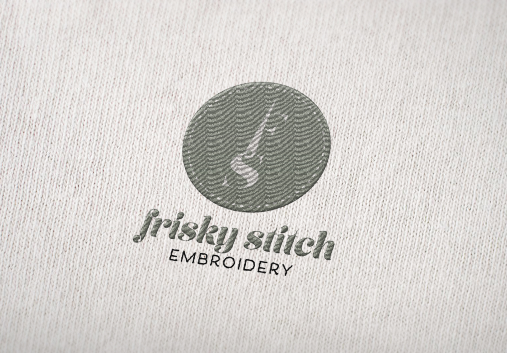 Design concepts for a local business "Frisky Stitch Embroidery."
