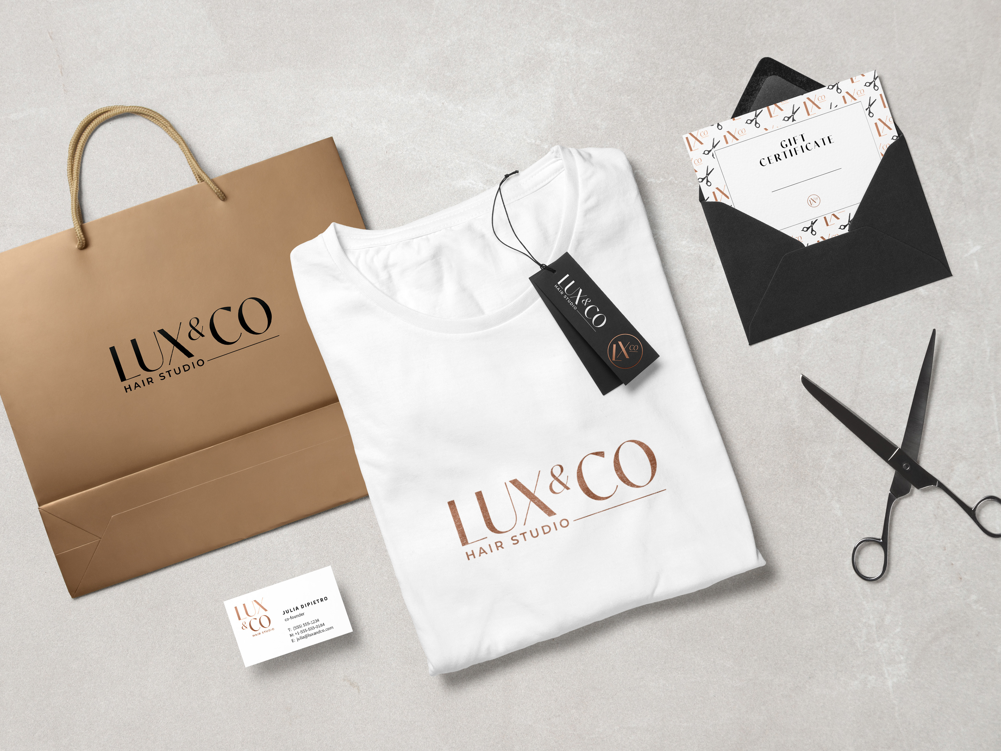 Lux & Co Hair Studio, where luxury meets boho chic! I had the pleasure of capturing the essence of this unique hair salon through an elegant logo to a dreamy color palette and stylish marketing materials.